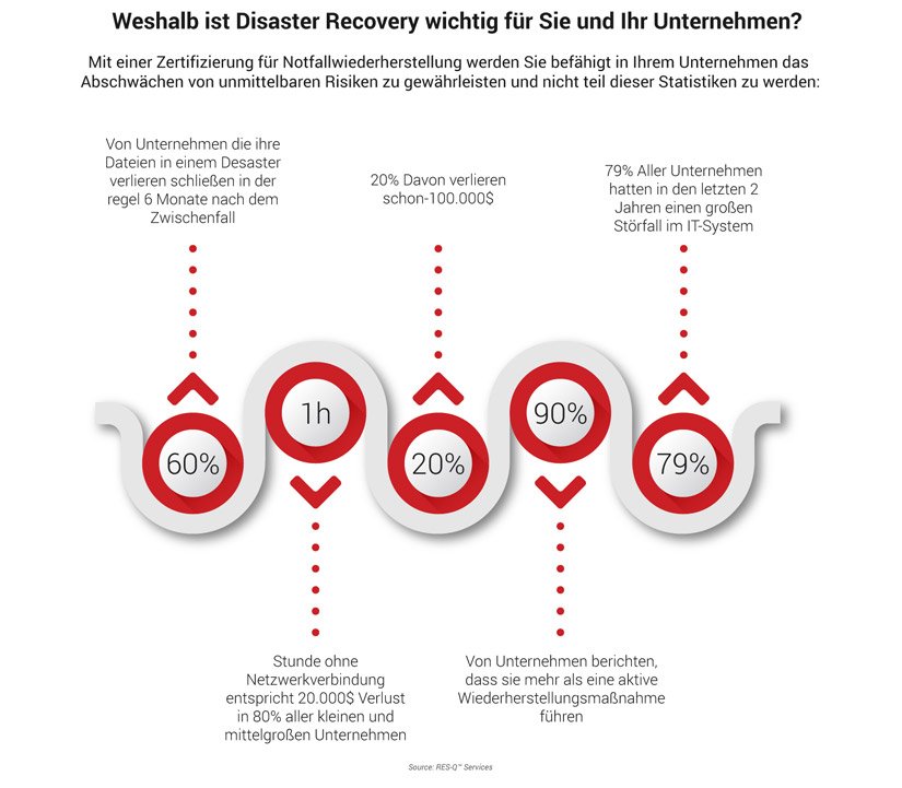 Erlangen Sie Ihre Grundkenntnisse für Notfallwiederherstellung und helfen Sie Ihrem Unternehmen verfahren, Vorhaben, Konzepte und Wiederherstellungsprozesse zu fördern. Eine Disaster-Recovery Zertifizierung beweist Ihre Entschlossenheit Ihr Dienstleistungsniveau und Ihre Fachkompetenz zu steigern.