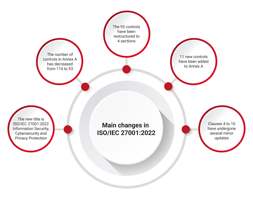 The part that has gone under the most significant changes is Annex A of ISO/IEC 27001 which is aligned with the ISO/IEC 27002:2022 updates, published earlier this year.
