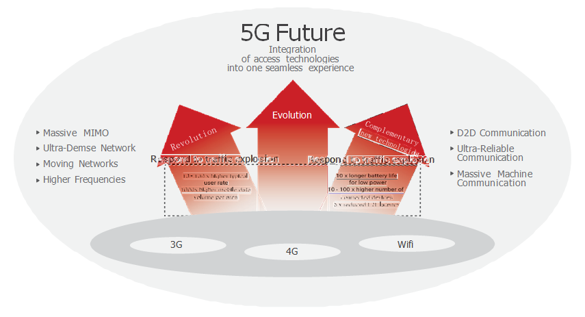 In order to enable connectivity for a wide range of applications with different characteristics and requirements, the capabilities of the 5G wireless access must extend far beyond those of previous generations of current mobile communications. The main requirements of 5G include very high data rates, very low latency, and ultra-high reliability. 5G will be realized by further development of LTE in combination with new radio access technologies. The key technology components of the 5G include extension to higher frequency bands, advanced multi-antenna transmission, user/control separation, flexible spectrum usage, device to device communication, and backhaul/access integration.