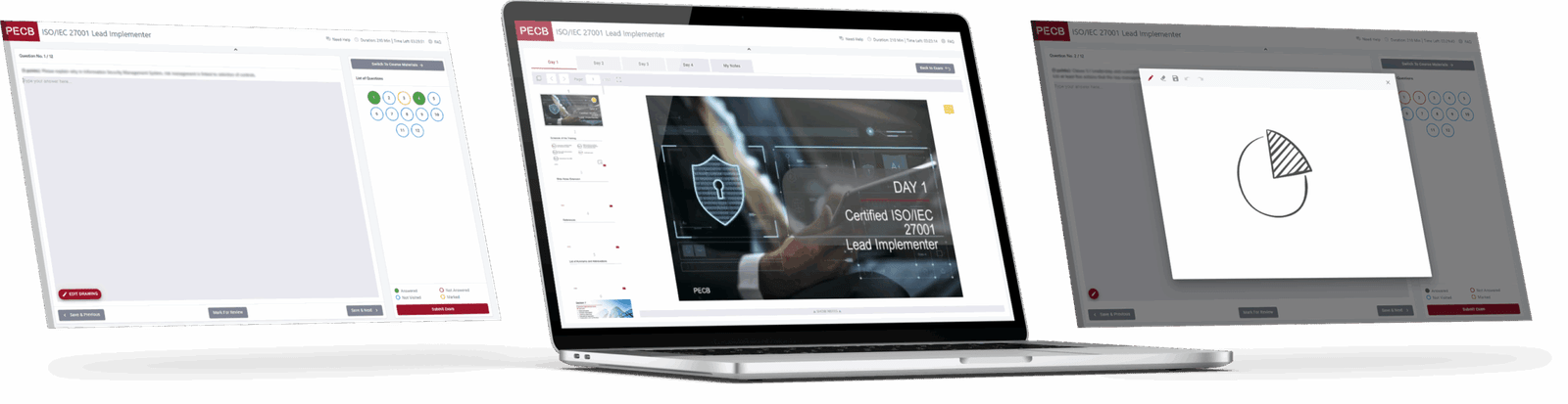 PECB Exams is an online examination application which allows you to take exams from anywhere at a scheduled time, in an efficient and secure manner. With our exam application, designed with the latest trends and highest standards, taking an exam has never been easier.