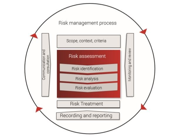 The organization’s risk management process should involve the systematic application of policies, procedures and practices to the activities of communicating and consulting, establishing the context and assessing, treating, monitoring, reviewing, recording and reporting risk