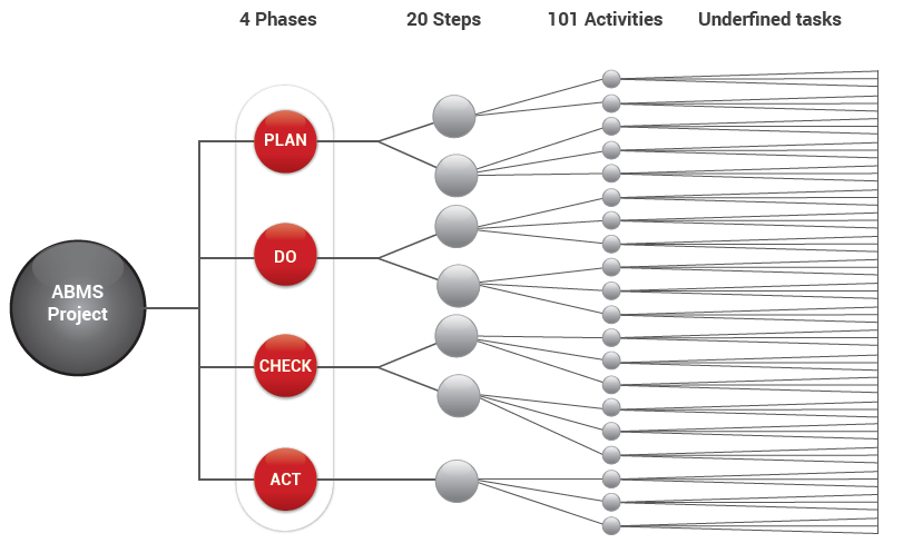 As such, Plan, Do, Check, Act cycle is divided into four phases and has 2-8 steps for a total of 20 steps. These steps are divided into 101 activities and tasks. This “Practical Guide” considers the key phases of the implementation project from start to finish and suggests the appropriate “best practice” for each one, while directing the organization to further helpful resources it embarks on its ISO 37001 journeys.